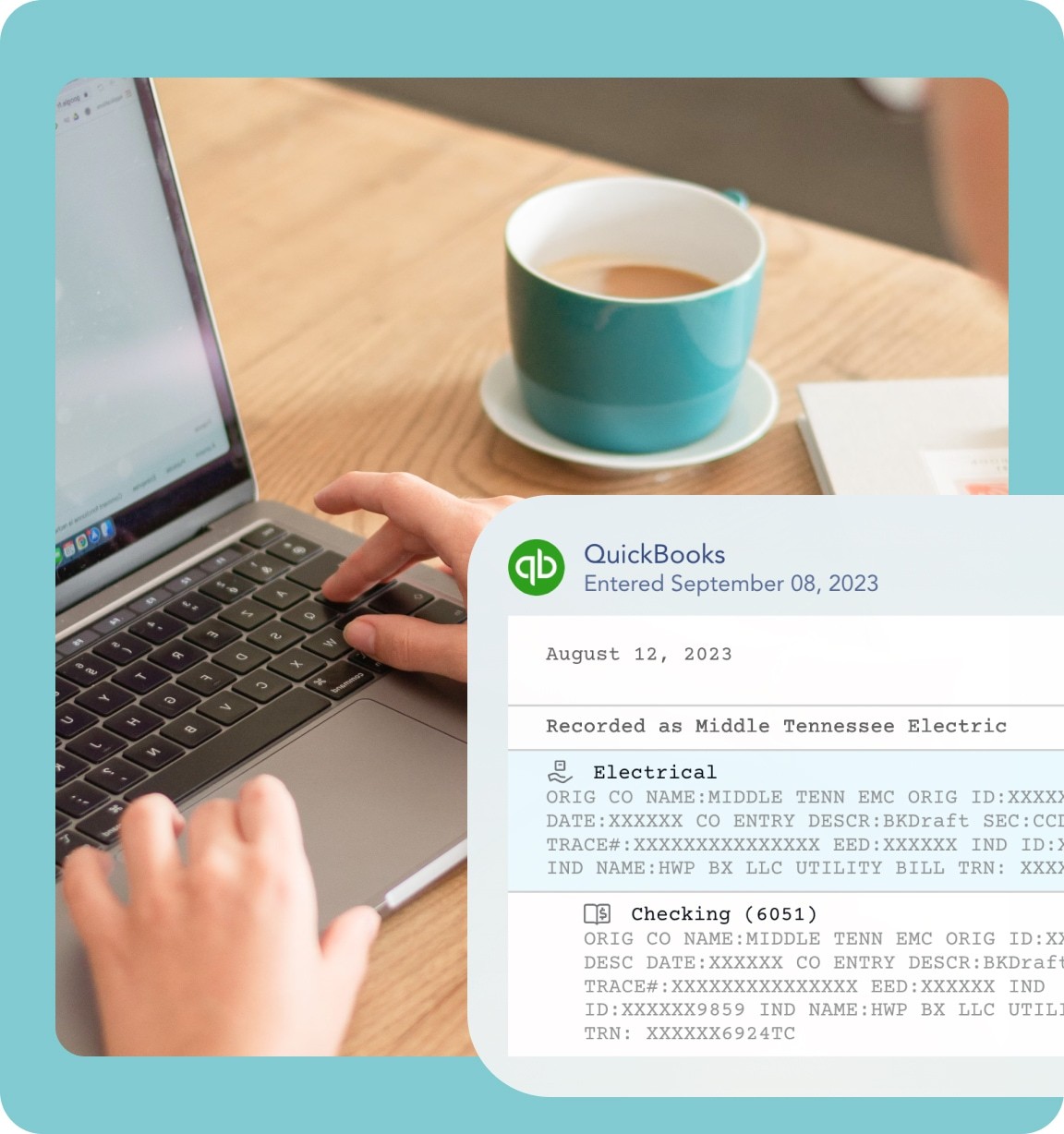 No manual entry. Connect bank accounts, payment processor, payroll, credit cards.